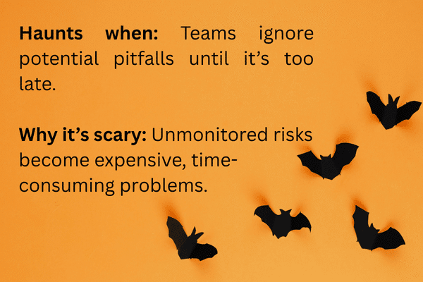 The Risk Wraith feeds on uncertainty, lurking in ignored assumptions and untracked dependencies, waiting to strike. One supplier delay or budget cut, and suddenly your plan unravels.